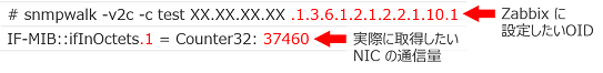 ifDescr.1 が目的のNICで、対象のインデックスは 1番目 と分かりました。
