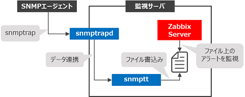 Zabbix 単体ではSNMP Trap メッセージを受信する機能を有していないため、